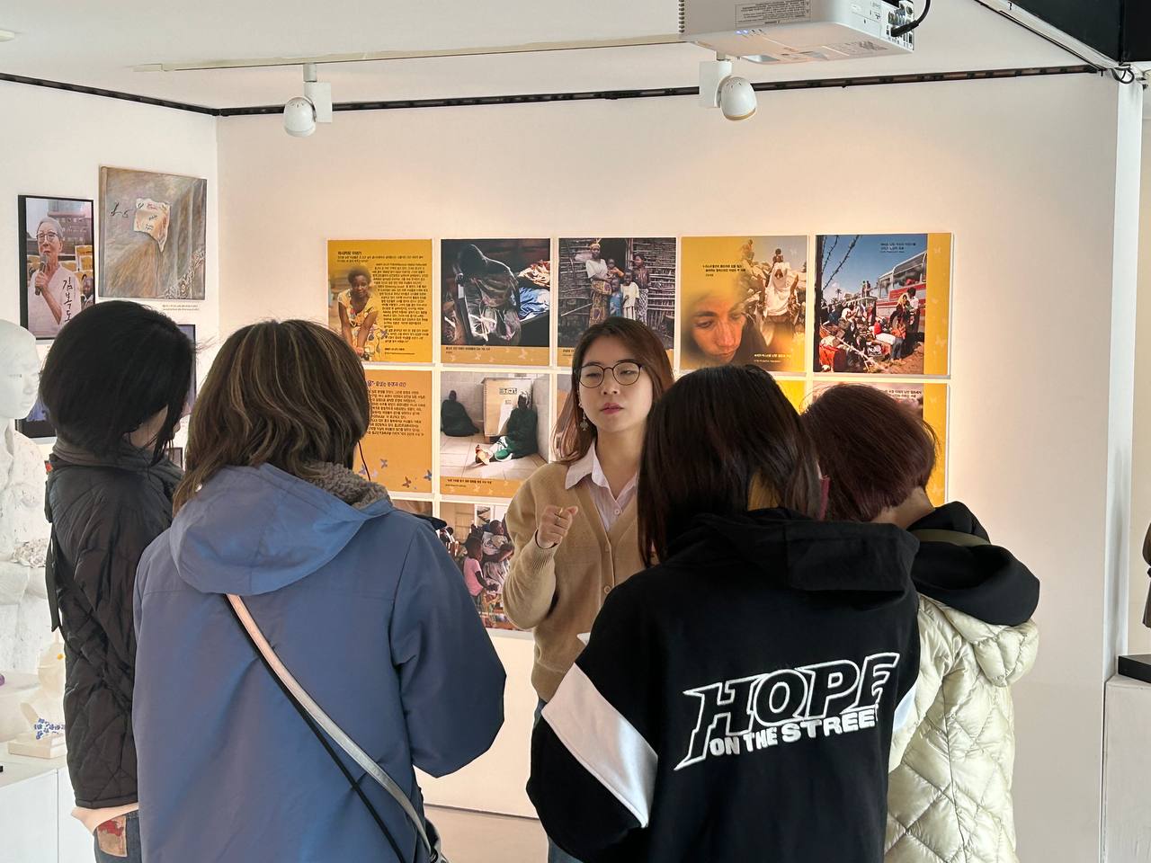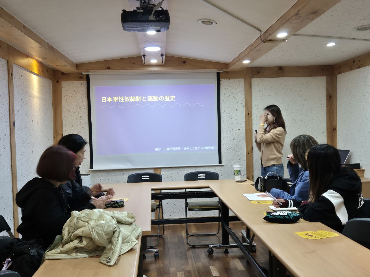 준비한 교안의 설명을 마치고, 문득 어떻게 한일 문제에 관심을 갖게 됐는지 궁금해졌어요. 최애가 제이홉인 모임인데요, 제이홉은 노래 가사에서 사회문제나 인권, 평화에 관한 이야기를 많이 다룬다고 해요. 가사를 더 이해하고 싶고, 그가 어떤 것들을 생각하는지 더욱 알고 싶어저셔 '덕질'을 위해 한국을 방문할 때마다 현장에서 공부하는 시간을 꼭 가진다고 해요!