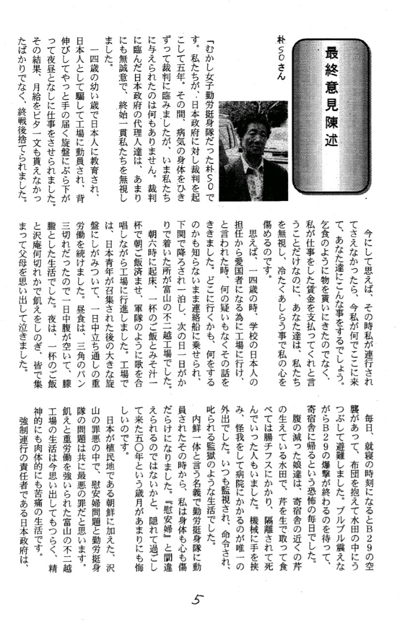 - 「最終意見陳述」, 『關釜裁判ニュース』 第 22号, 1997.11.16., p. 5.