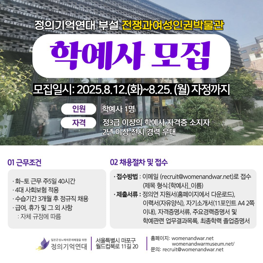 [전쟁과여성인권박물관 학예사 채용 공고]
