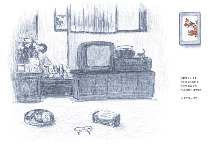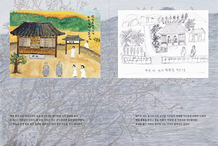 마치 헝클어진 타래에서 실낱 하나를 끄집어 올리듯, 김지현은 그림에 새겨진 김복동의 기억과 감정의 흔적들을 그림과 시의 언어로 표현했다. 조심스럽지만 적극적으로 그 그림들의 뒤를 잇듯 그리고, 또 이어서 썼다. 역사적 기록물로서 일본군 ‘위안부’ 피해사실을 열거하기보다, 김복동이 일상 속에서 만났을 풍경과 사람, 마음 속 이야기를 풀어내는 작업에 집중했다. 삶에 대한 의지와 번민, 그저 평범한 생을 살고 싶은 한 사람으로서의 내면 풍경을 김복동의 그림에서 찾아 풀어냄으로써, 김복동의 일상이 어디에나 있는 우리 이웃의 일상처럼 독자의 삶 곁에 머무를 수 있었으면 하는 바람을 담았다. 나아가 작가는 이제 고인이 되어 마주할 수 없는 분들을 우리가 어떻게 기억하고 그 기억을 이어갈 수 있을지를 고민하며 질문하고 있기도 하다.