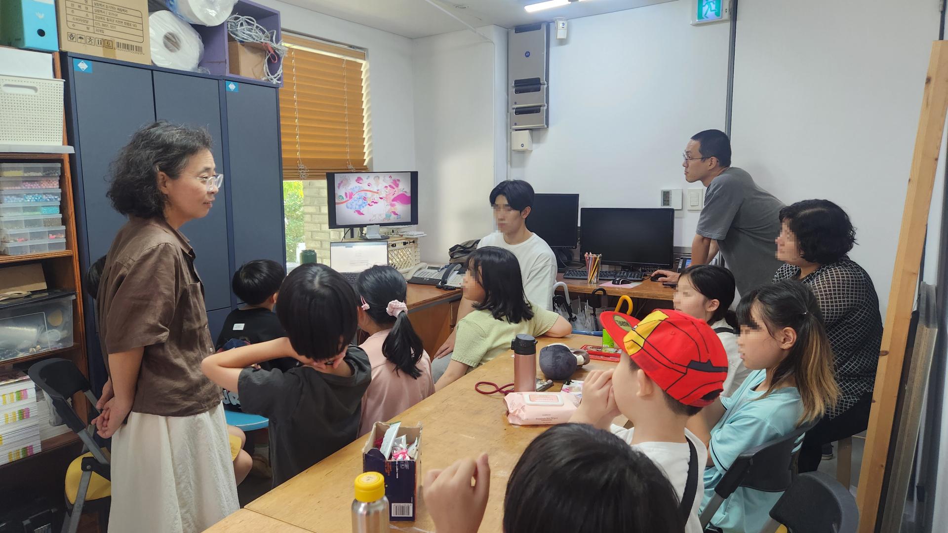 무더운 여름 오후의 뜨거운 햇빛을 맞으며, 마포구의 우리동네 키움센터 학생들이 박물관 관람과 체험을 하러 방문했습니다. 초등학교 저학년 학생들에게 어떻게 일본군'위안부' 피해 생존자들의 이야기를 들려줄지 많은 고민이 있었는데, 관장님께서 동화 '꽃할머니'를 시청하며 초등학교 저학년 학생들의 눈높이에서 흥미롭게 소개해주셨습니다.